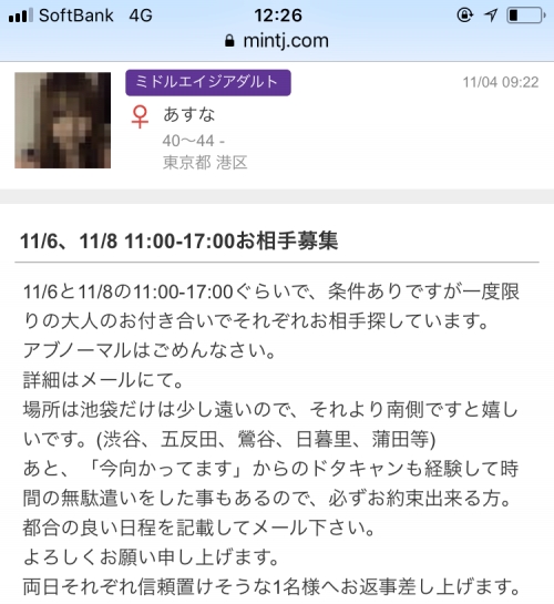募集をかける時の注意点ですが、あまり露骨なもの(援交相手探してます!)等はNG。