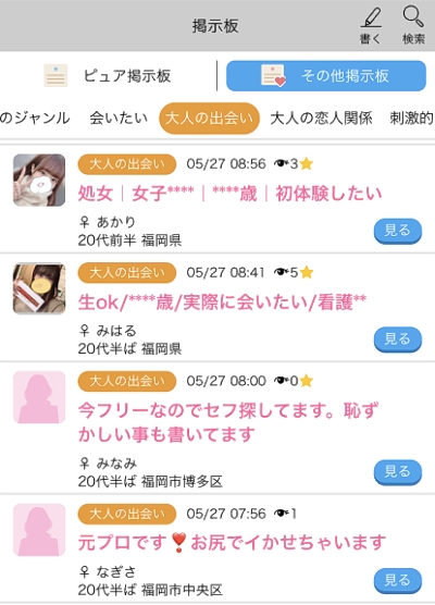 機能はメッセージ以外にも○好みの女性を絞って検索する○掲示板を見る、書き込みをする○画像や動画を見る○日記を読む、書く○おしゃべりするなど様々なコンテンツが用意されています(女性会員は登録・利用ともに全て無料で利用出来ます)